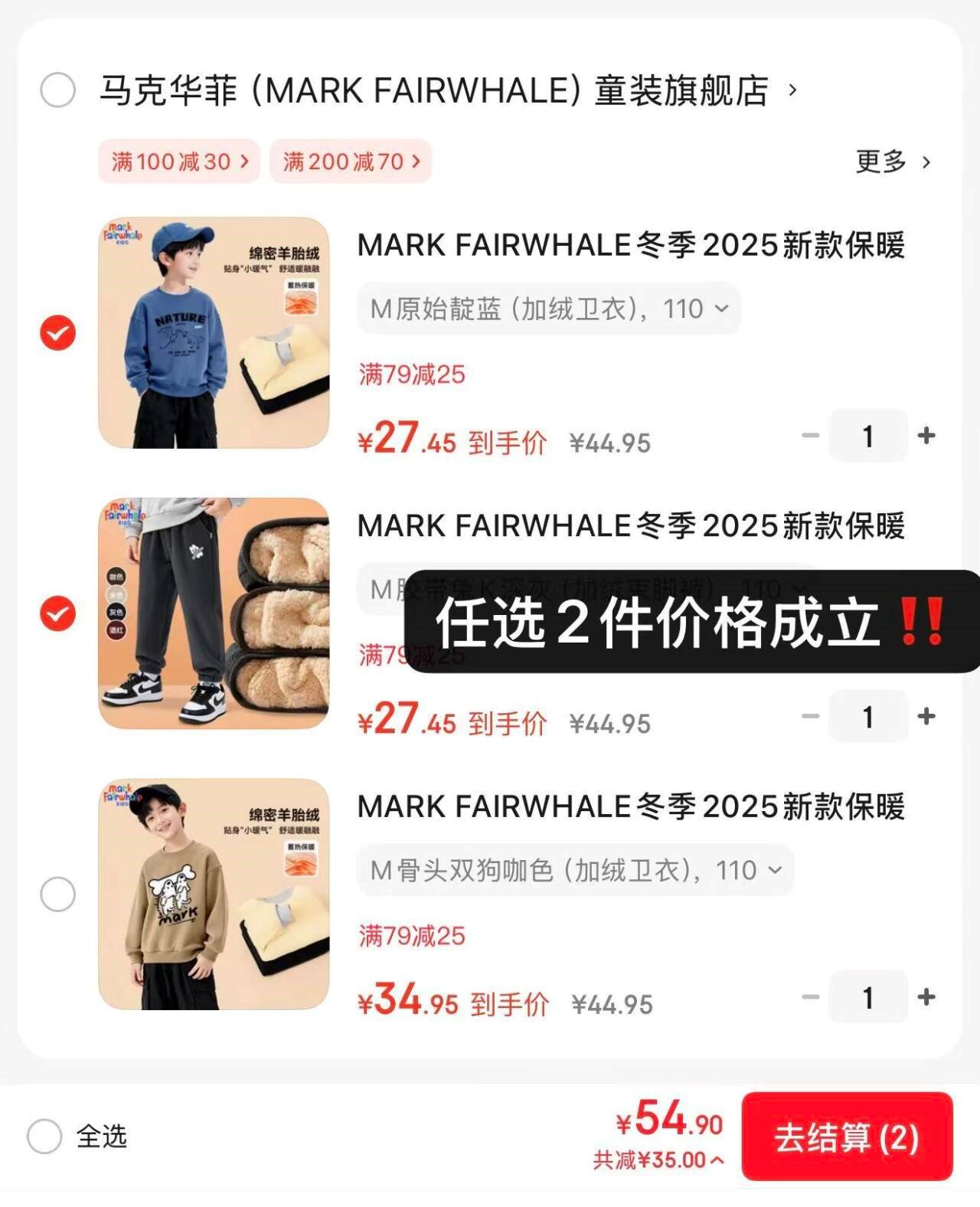 ——马克华菲童装車—— 先领79-10补帖卷 马克华菲 儿童羊胎绒卫衣裤子发报员2025年11月23日 21:330举报 ——马克华菲童装車——先领79-10补帖卷https://u.jd.com/WGvX6cu马克华菲 儿童羊胎绒卫衣裤子https://u.jd.com/WrvxdqI任选2件54.9亓,折27.4亓/件*柔软亲肤 聚热锁温 温暖加倍复制文案