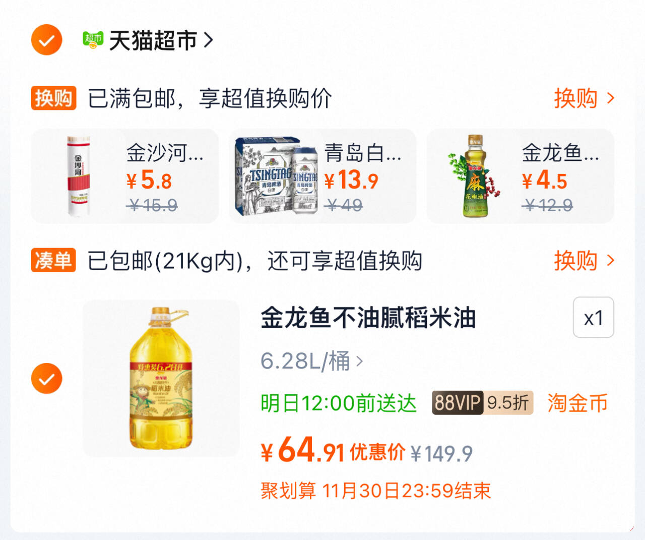 金龙鱼稻米油6.28L,vip价64.9元 点右上角3个点-淘金币-我的足迹-重新加购 发报员 2025年11月23日 21:45 0 举报 金龙鱼稻米油6.28L,vip价64.9元https://m.tb.cn/h.SExw72Y点右上角3个点-淘金币-我的足迹-重新加购 复制文案