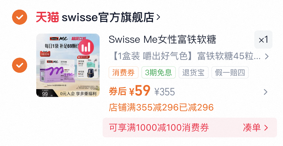 59 【Swisse】斯维诗补血气富铁软糖45粒 发报员 2025年11月24日 00:09 0 举报 59【Swisse】斯维诗补血气富铁软糖45粒https://m.tb.cn/h.SwLJ5HA 复制文案