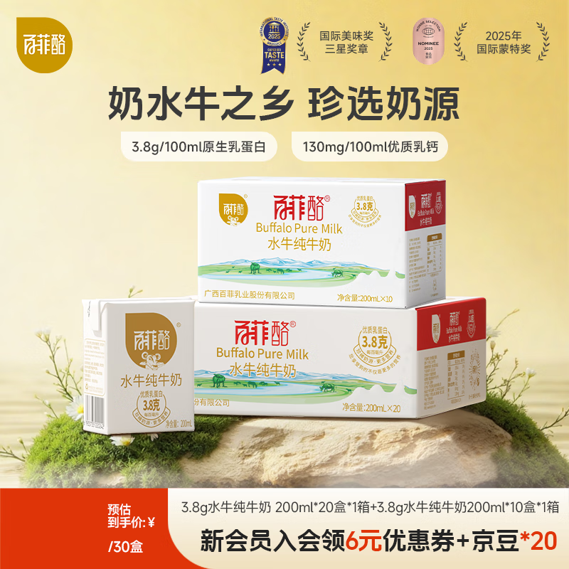 百菲酪 3.8g水牛纯奶 200ml*30盒