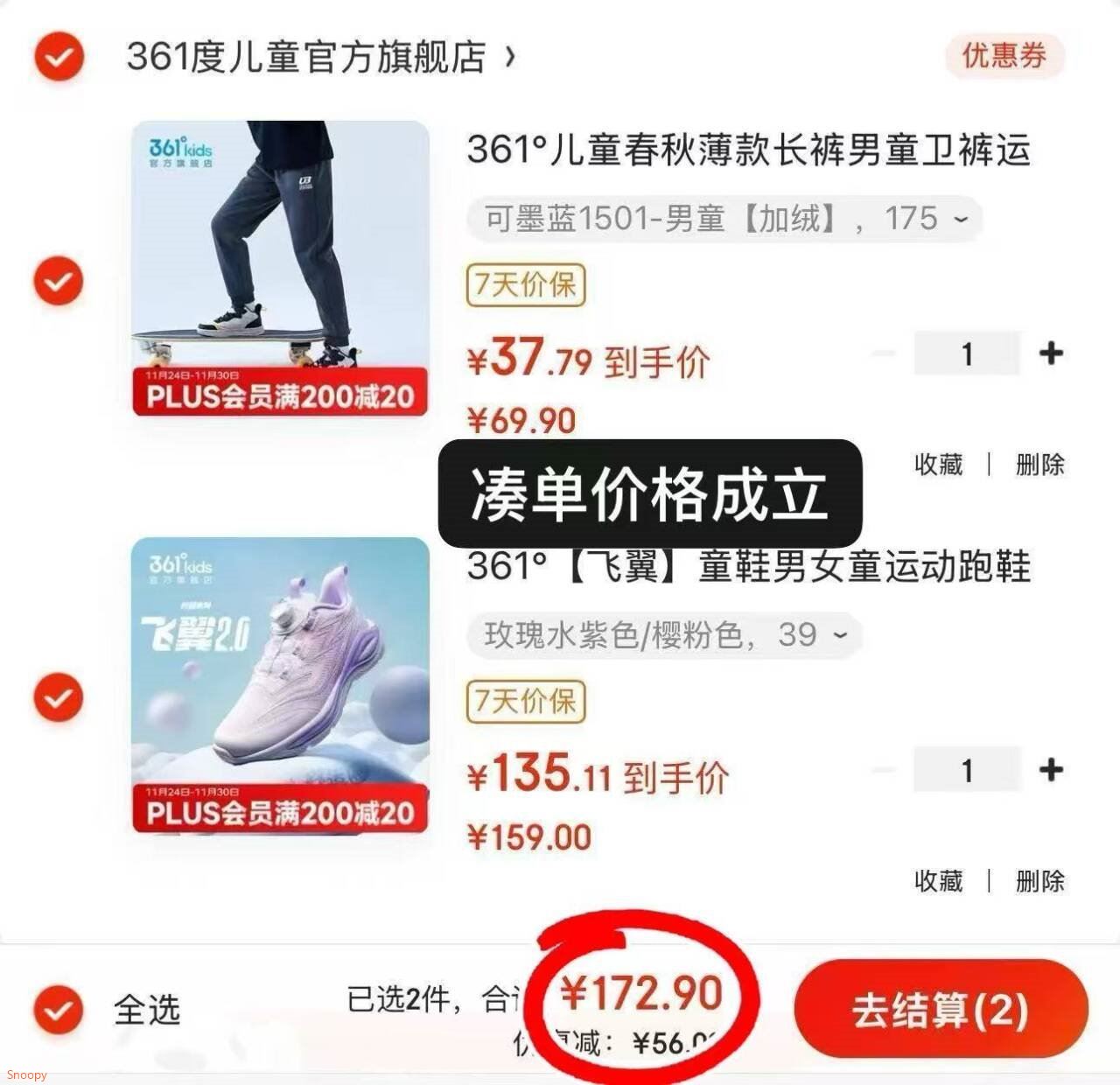 plus2件一起到手付172.9亓