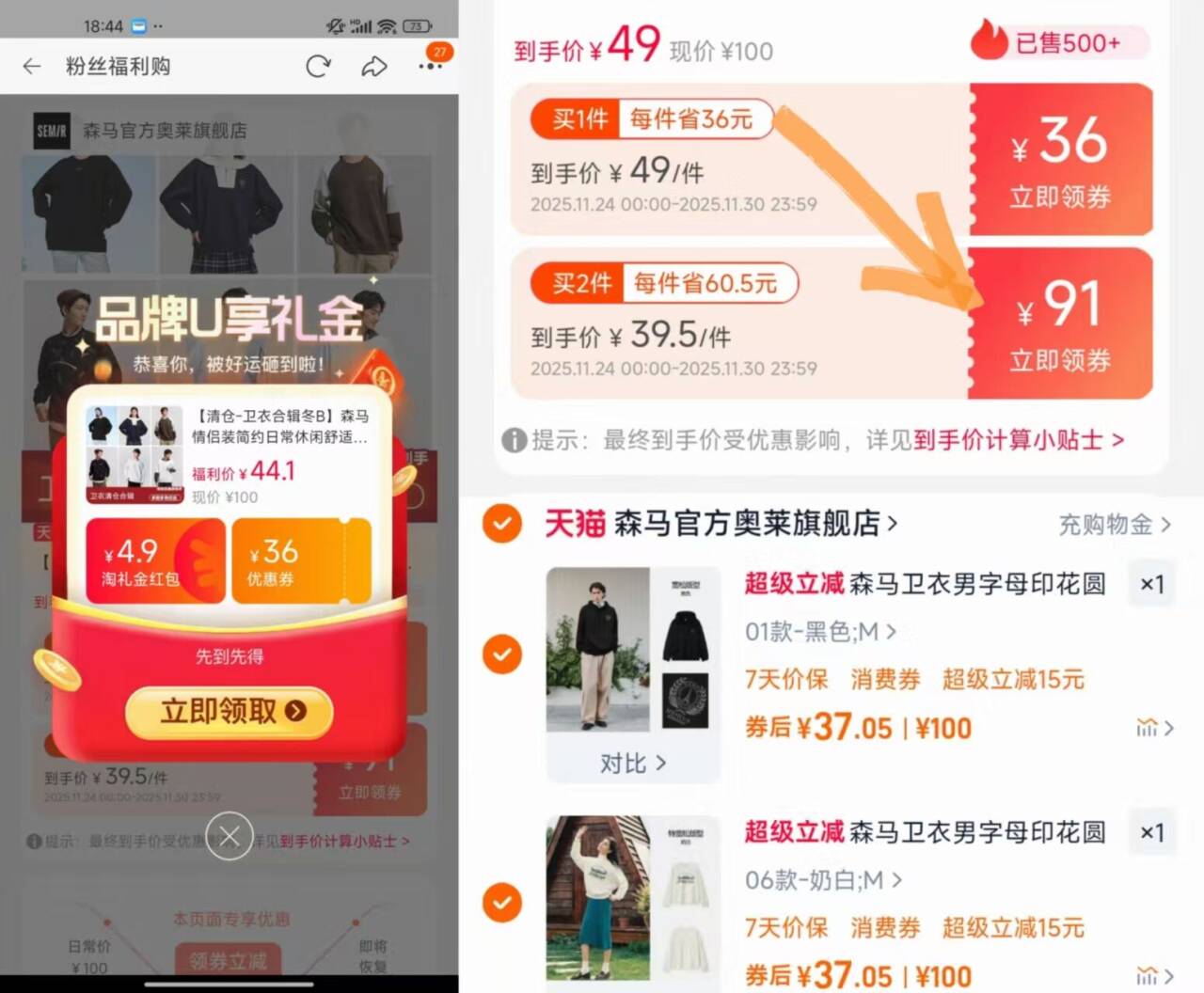 领91券 任选2件74.1元 森马清仓-卫衣合辑冬 很多款式先选码再选款 好单发报员 2025年11月25日 23:03 0 举报 领91券 任选2件74.1元森马清仓-卫衣合辑冬很多款式先选码再选款https://m.tb.cn/h.SxdhDN5 复制文案