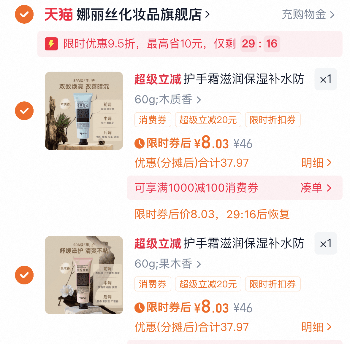 速,拍2件 8亓一支 娜丽丝香氛护手霜60g/支 好单发报员 2025年11月26日 00:28 0 举报 速,拍2件 8亓一支娜丽丝香氛护手霜60g/支https://m.tb.cn/h.SDyFaqO 复制文案