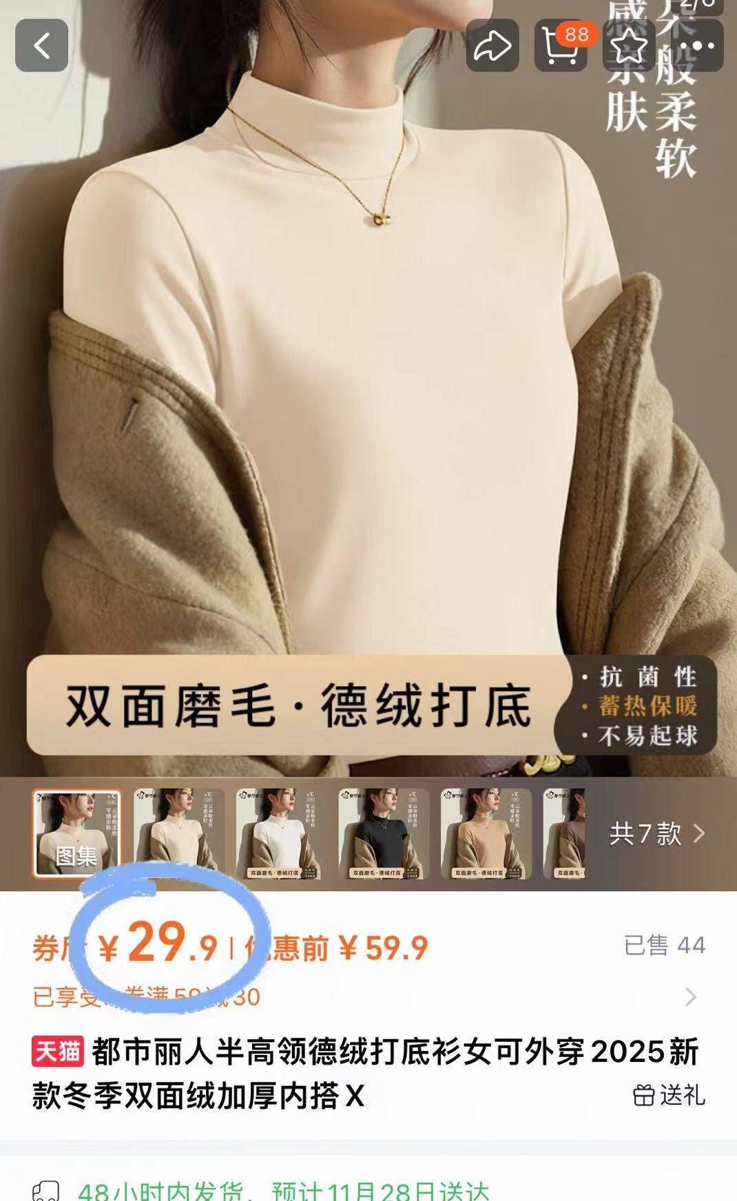 都市丽人德绒打底衫 多色可选任选拍下29元.9 内搭,单穿、或者叠穿都行好单发报员2025年11月26日 00:310举报 都市丽人德绒打底衫多色可选任选拍下29元.9内搭,单穿、或者叠穿都行告别臃肿 冬天别提多舒服了-https://m.tb.cn/h.SCavNTd复制文案