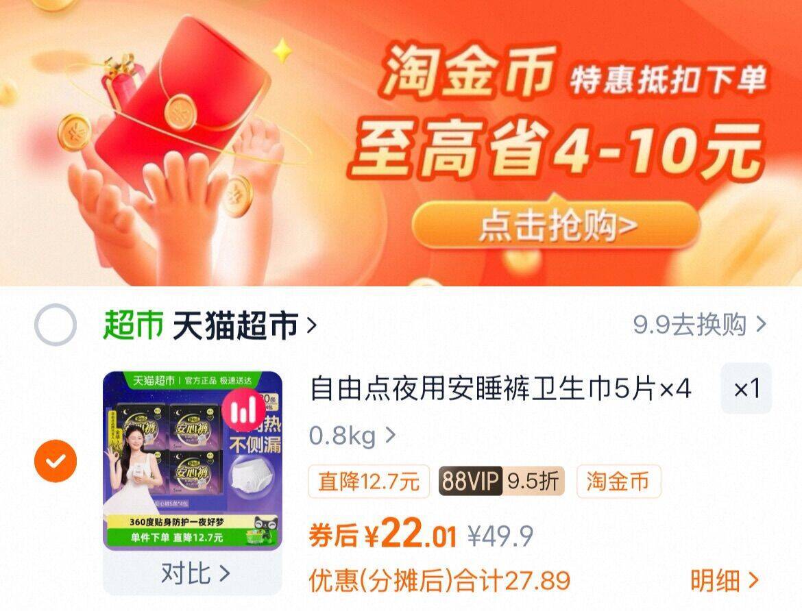下拉详情页拍下 vip 22亓 1.1/条 自由点 安睡裤20条