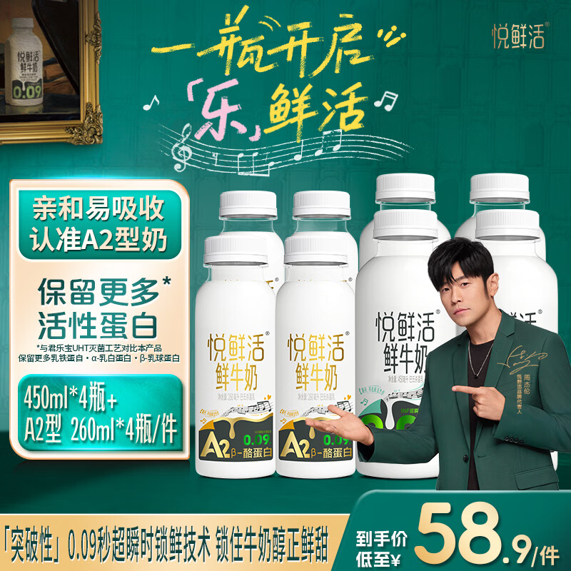 悦鲜活 低温鲜牛奶组合*8瓶