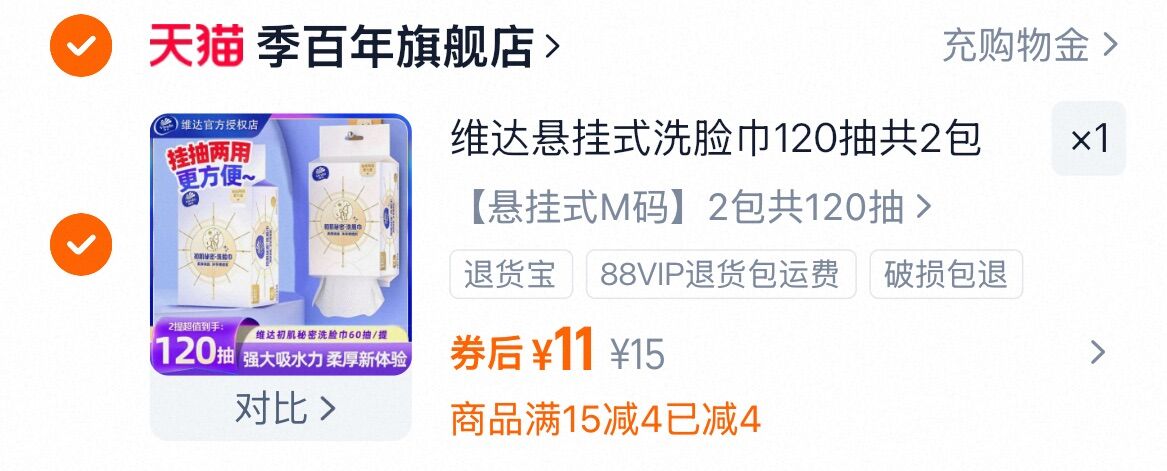 维达 悬挂式洗脸巾60抽*2提