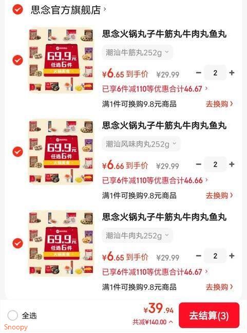 6.66元/件!火锅丸子! 思念 火锅丸子252g超多任选 任选6件39.94元 冬天吃火锅必备!好单发报员2025年11月27日 09:580举报 6.66元/件!火锅丸子!思念 火锅丸子252g超多任选https://u.jd.com/WaEXOFW任选6件39.94元 冬天吃火锅必备!复制文案