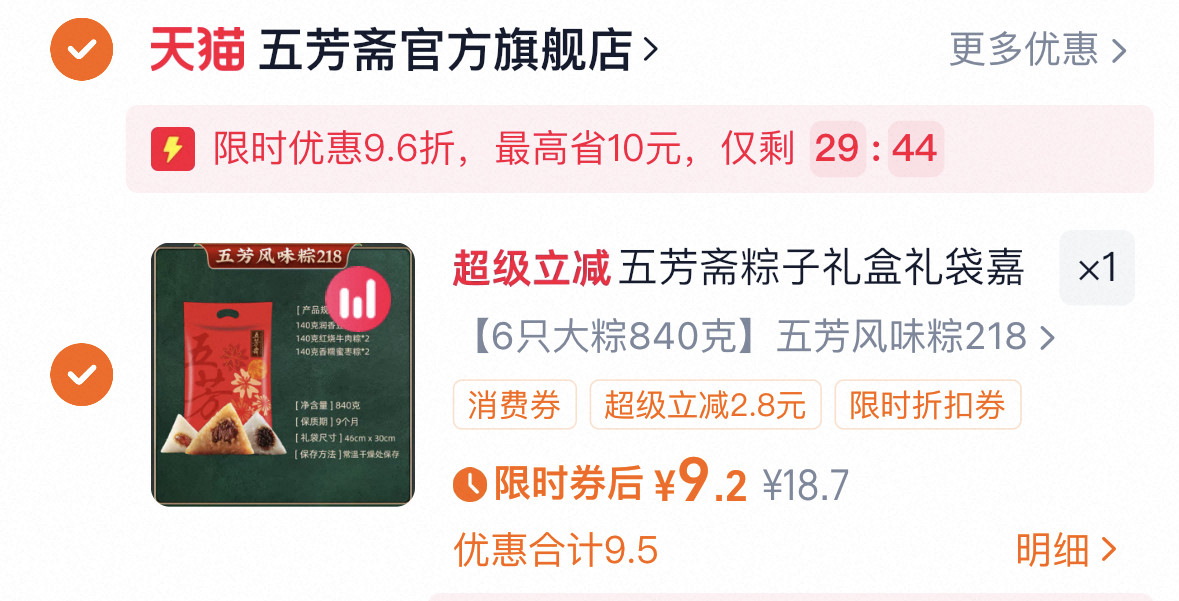 去陶金币拍 9.2 五芳斋粽子6只840g 好单发报员 2025年11月29日 15:00 0 举报 去陶金币拍 9.2五芳斋粽子6只840ghttps://m.tb.cn/h.SyyPqVz 复制文案