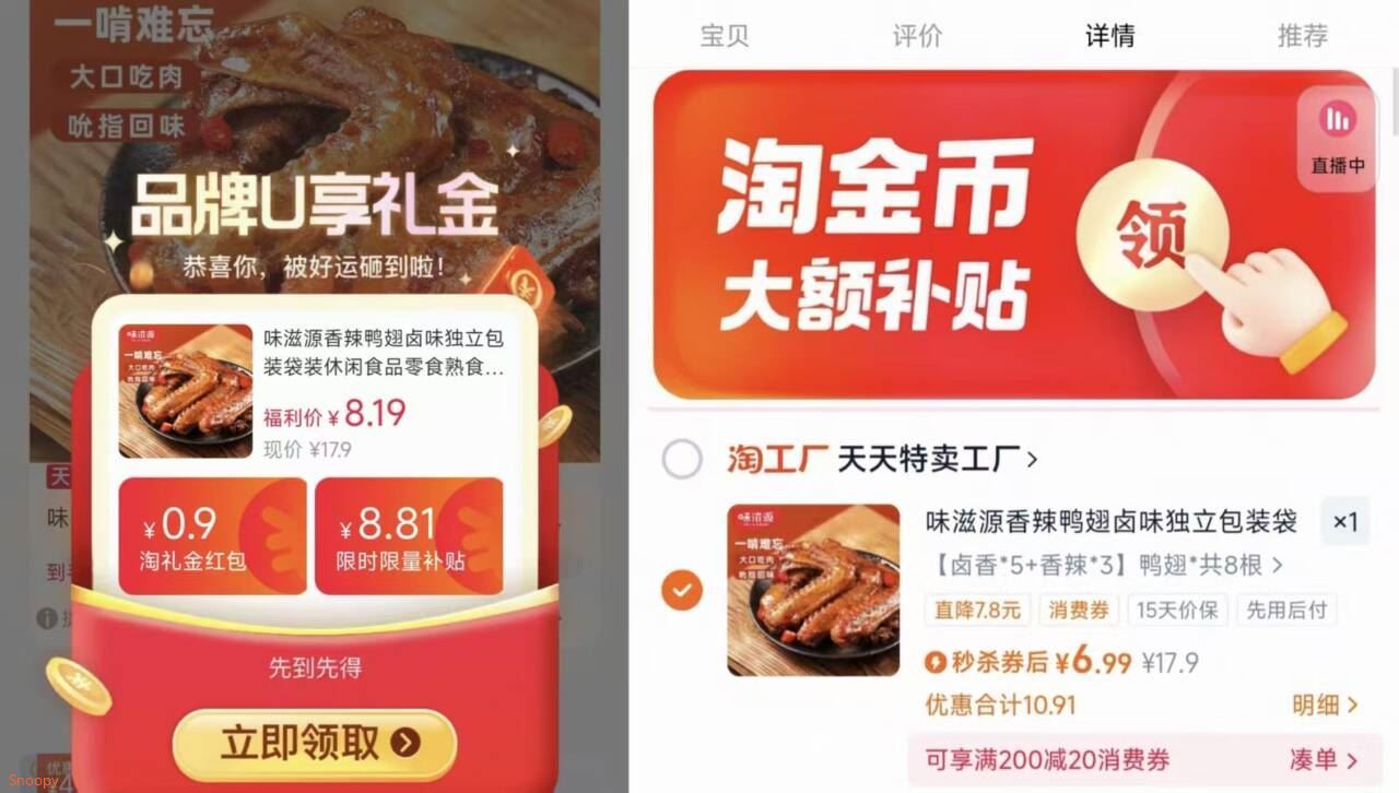 6.9元味滋源鸭翅 卤香 香辣到手共8个~ 叠礼金 如图叠淘金币 好单发报员 2025年11月29日 15:00 0 举报 6.9元味滋源鸭翅卤香 香辣到手共8个~叠礼金 如图叠淘金币个大饱满!越啃越有劲哦-https://m.tb.cn/h.SyUpAsg 复制文案