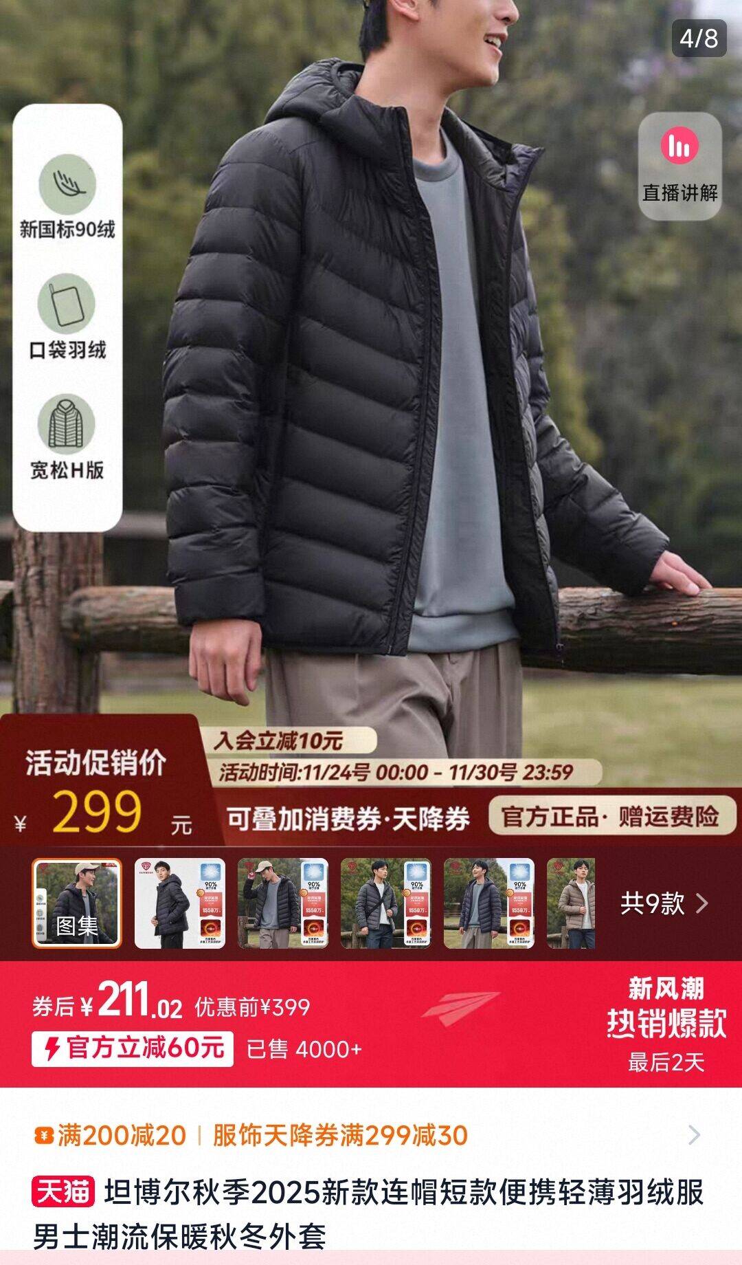 淘金币服饰券 消费券211.1元 坦博尔官方旗舰店 坦博尔轻薄连帽羽绒服合集 好单发报员 2025年11月29日 15:17 0 举报 淘金币服饰券 消费券211.1元【坦博尔官方旗舰店 】坦博尔轻薄连帽羽绒服合集https://m.tb.cn/h.SyBWi4f轻奢质感面料,防风又保暖天气马上变冷 趁划蒜安排上! 复制文案