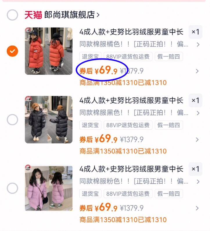 69.9亓起最贵才89.9亓 史努比 儿童羽绒服合集 多颜色可选 加厚保暖有百搭 好单发报员 2025年11月30日 11:07 0 举报 69.9亓起最贵才89.9亓【史努比】儿童羽绒服合集多颜色可选 加厚保暖有百搭https://m.tb.cn/h.SBUM7xf 复制文案