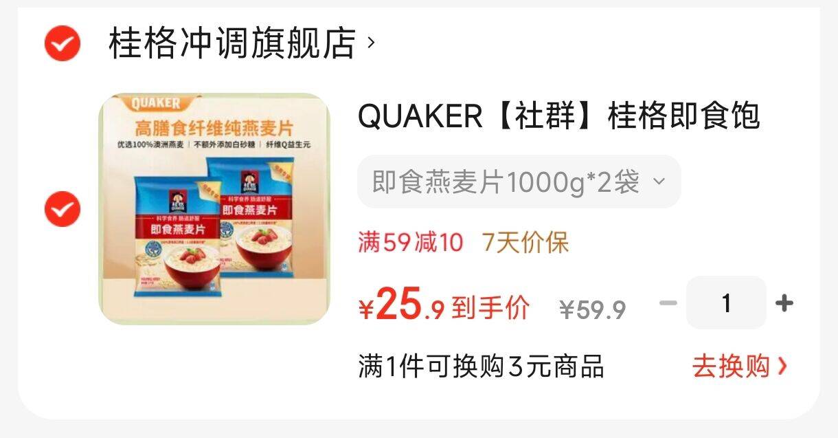 桂格即食燕麦片1000g*2袋 25元.9,折12.9一袋 领 好单发报员 2025年11月30日 12:50 0 举报 桂格即食燕麦片1000g*2袋25元.9,折12.9一袋领https://u.jd.com/WaXxjV6拍https://u.jd.com/WDXJmAd 复制文案