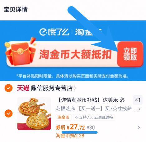 27.7亓起下拉拍最后选项 达美乐 必胜客披萨兑换券 7英寸芝士披萨买一赠一
