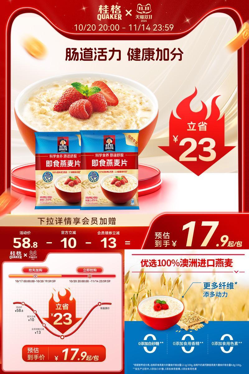 29.9元 quaker桂格旗舰店 桂格即食冲饮燕麦片原味
