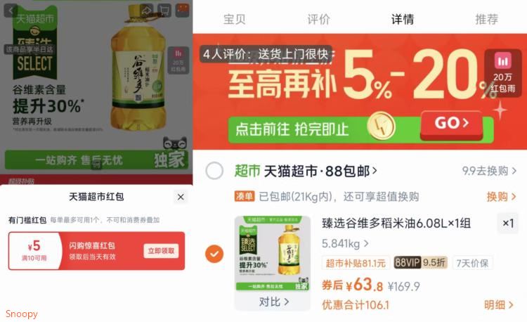 金龙鱼谷维多稻米油63元.2 叠标题下3福袋,到手6.08L - 好单发报员 2025年12月01日 12:36 0 举报 金龙鱼谷维多稻米油63元.2叠标题下3福袋,到手6.08L-打开口令,叠标题下领5券下滑详情,到秒杀页面去拍https://m.tb.cn/h.SzbySSo 复制文案