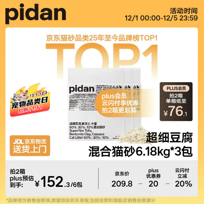 pidan 极细豆腐膨润土猫砂 6.18kg*3
