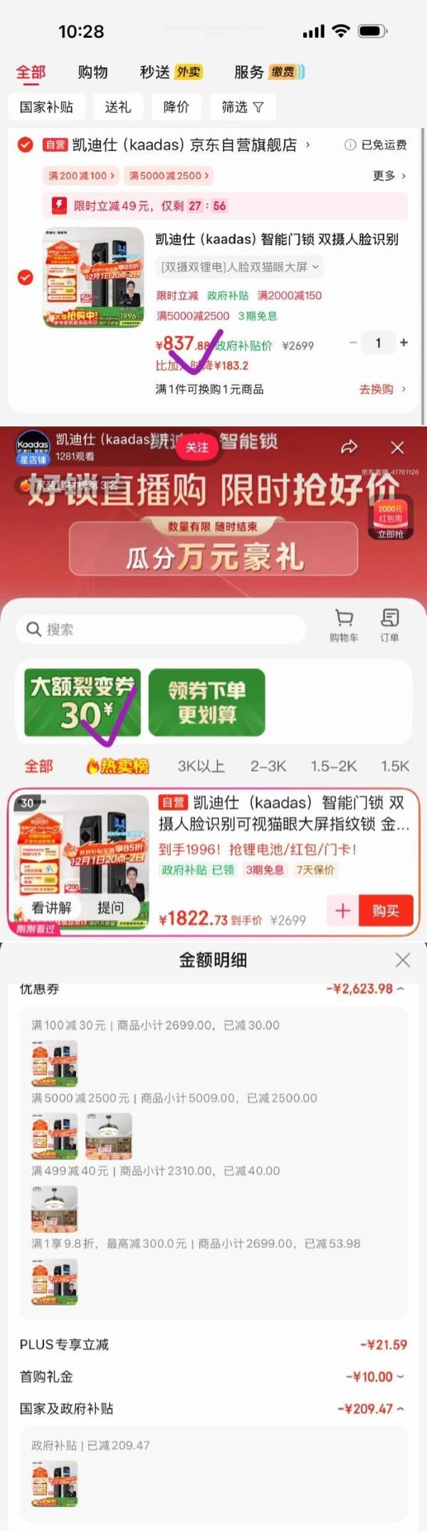 凯迪仕(kaadas)智能门锁 双摄人脸识别 金刚P30 Pro Max双摄,弹49立减,以旧换新 补贴