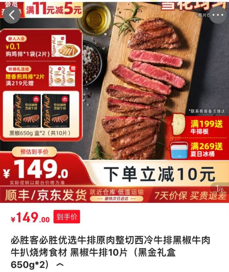 149元必胜客牛排好价 原肉整切 多汁好吃 爱吃的囤上 - 好单发报员 2025年12月02日 10:34 0 举报 149元必胜客牛排好价原肉整切 多汁好吃 爱吃的囤上-必胜客黑椒牛排650g*2/10片赠2盒高铁安格斯黑椒牛肉意面https://u.jd.com/W6FquIv 复制文案