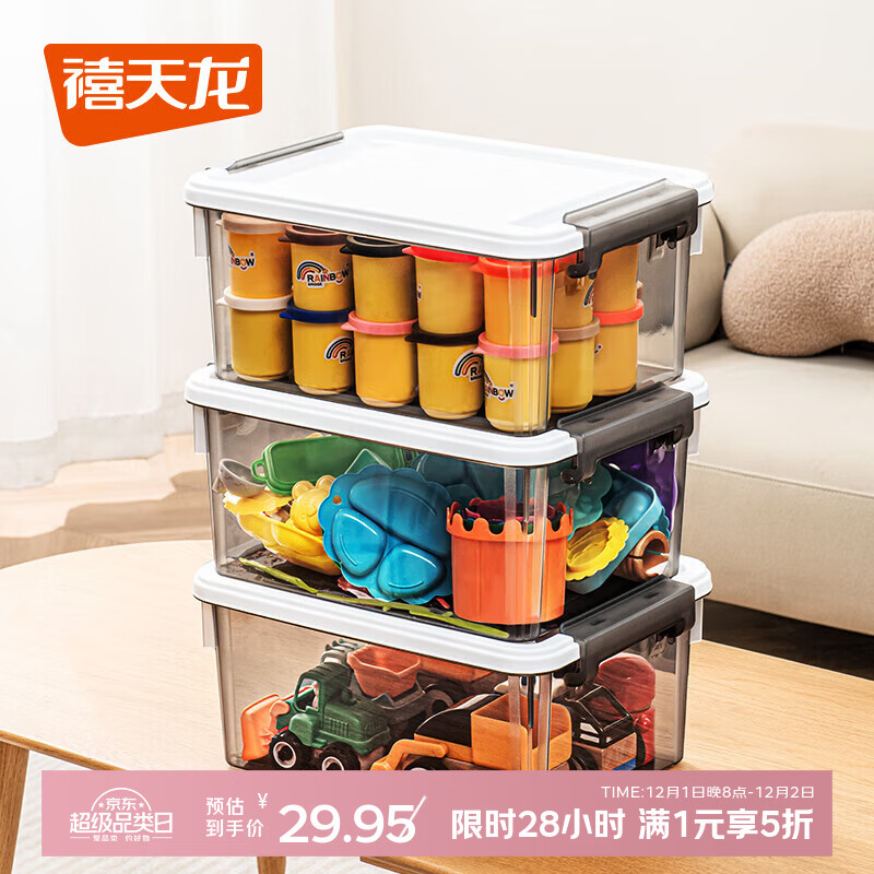 禧天龙 加厚大号透明收纳箱 31L *3只【59.5】