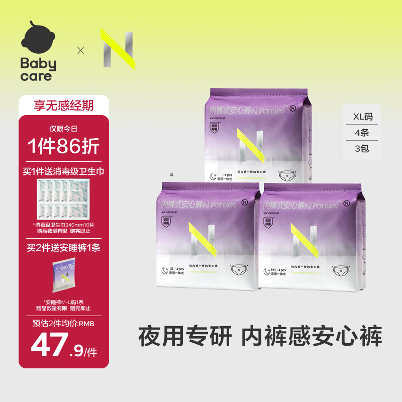 【JD自营】babycare 日夜小N安睡裤M-L/安心裤XL码12片