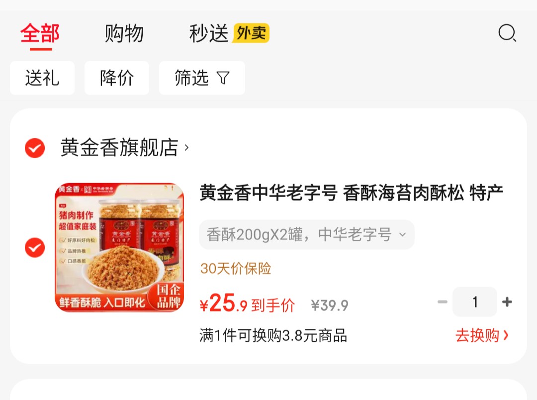 黄金香 中华老字号 香酥海苔肉酥松 200g*2罐【20.9】