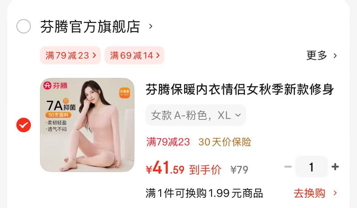 芬腾 保暖内衣情侣打底秋衣秋裤套装【41.5】