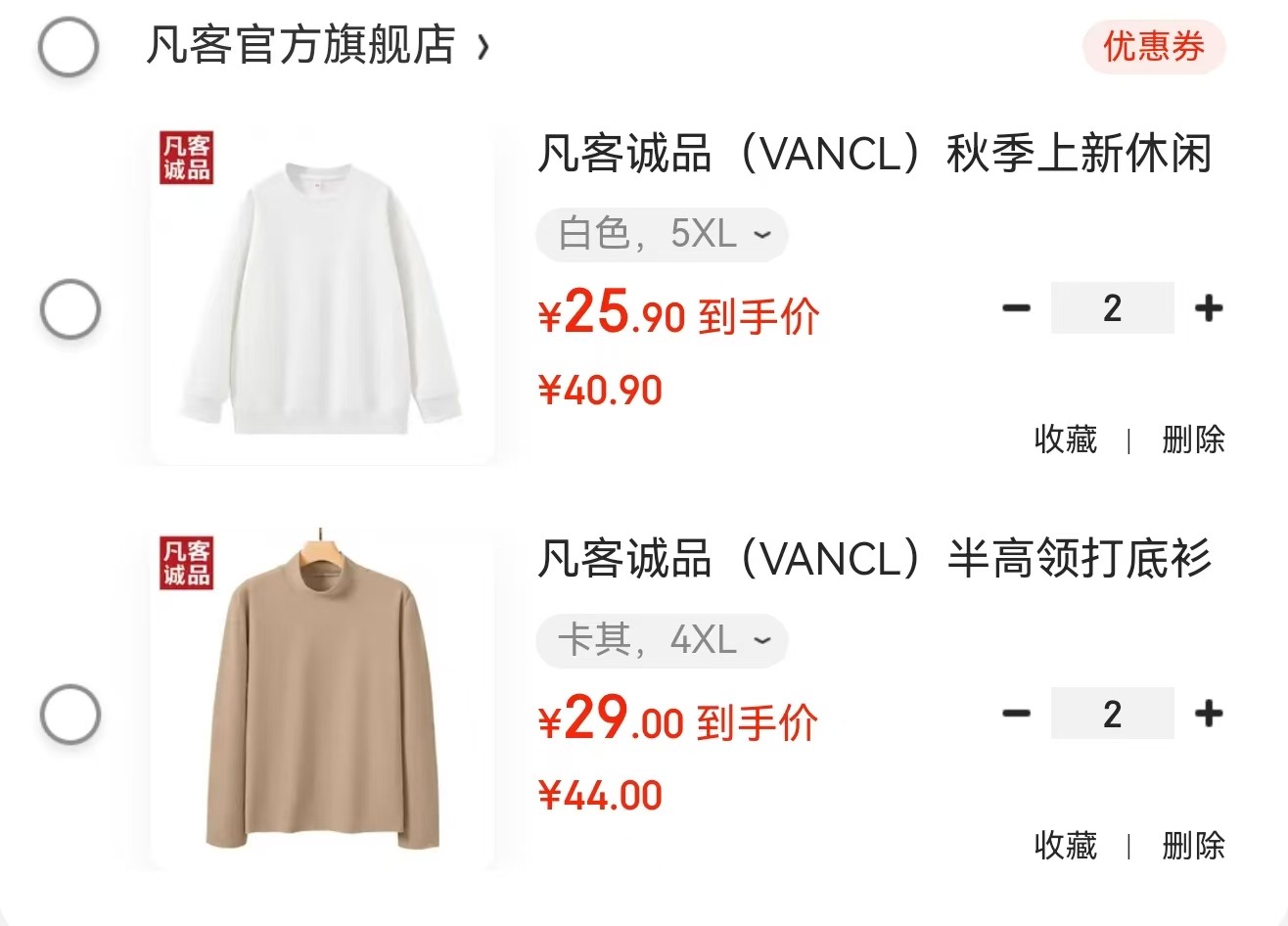凡客诚品 (VANCL)半高领打底衫长袖,拍2件【58】