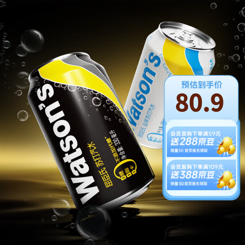 屈臣氏 苏打汽水气泡水0糖0脂经典原味 盐味共330ml 24罐