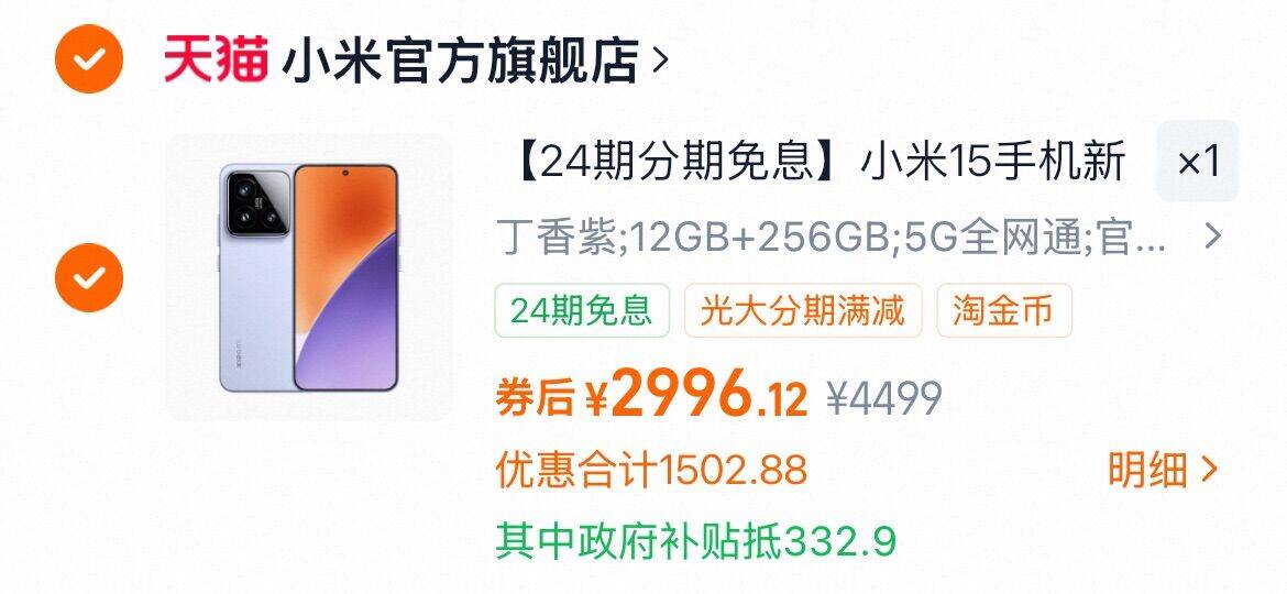 国补后 2996亓 小米15手机 12G 256 好单发报员 2025年12月03日 12:08 0 举报 国补后 2996亓小米15手机 12G 256https://m.tb.cn/h.SAXUEbZ 复制文案