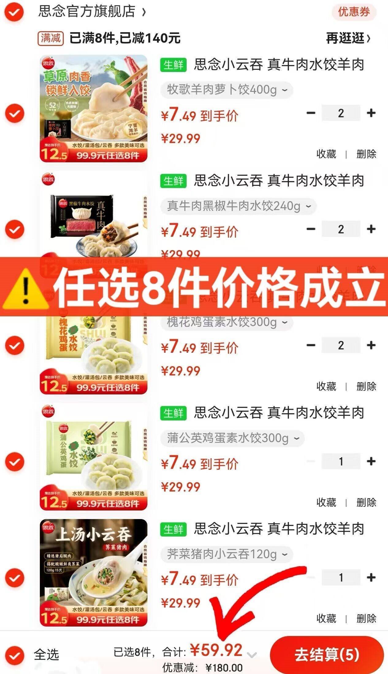 思念 牛羊肉/蒲公英素水饺等 任选8件59.9亓,款款好吃 好单发报员 2025年12月03日 13:07 0 举报 思念 牛羊肉/蒲公英素水饺等https://u.jd.com/W1mOHVZ任选8件59.9亓,款款好吃 复制文案