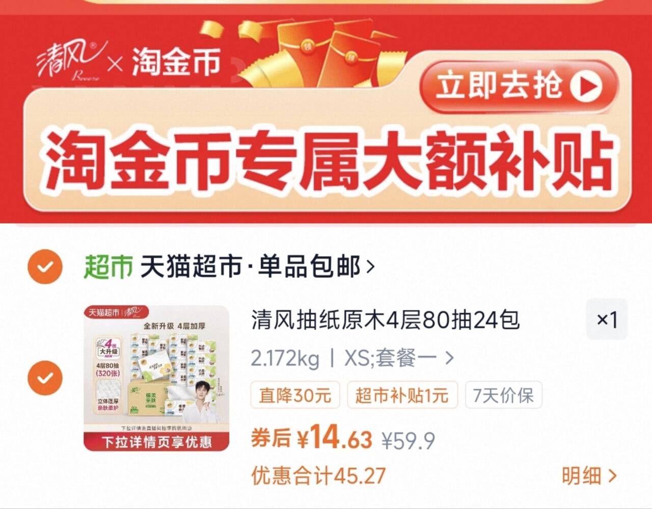 2、下拉详情拍 用5虹包,14.6亓,折0.6/包 清风 原木抽纸4层24包 好单发报员 2025年12月03日 14:03 0 举报 2、下拉详情拍用5虹包,14.6亓,折0.6/包清风 原木抽纸4层24包https://m.tb.cn/h.SAMQern 复制文案