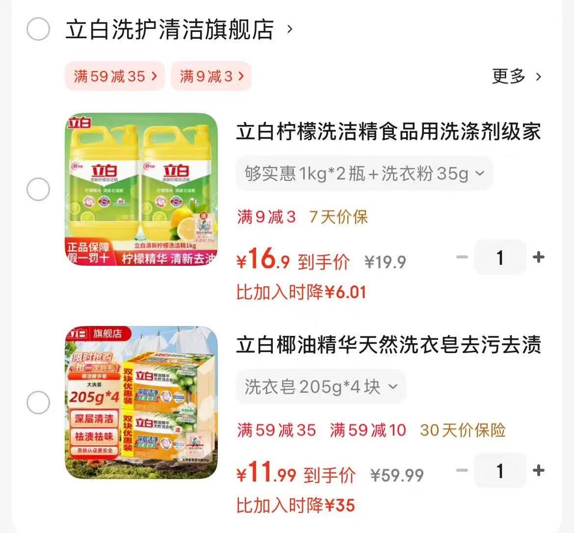 立白 柠檬洗洁精食品用1kg*2瓶 洗衣粉35g【16.9】