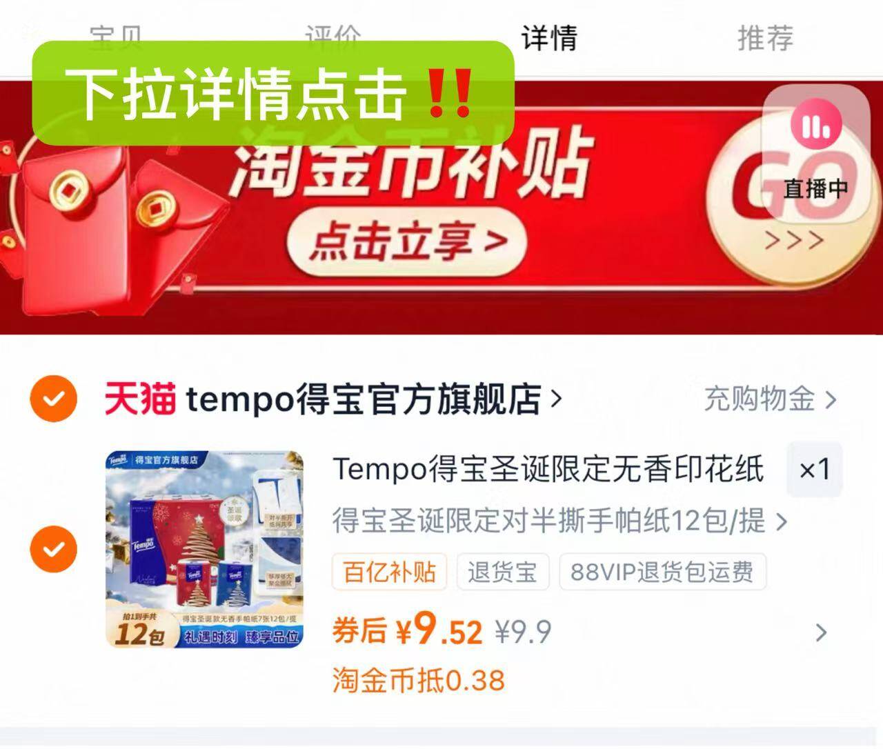 Tempo得宝圣诞花纸手帕 下拉详情12包9元.5 好单发报员 2025年12月03日 17:07 0 举报 Tempo得宝圣诞花纸手帕下拉详情12包9元.5https://m.tb.cn/h.SAA24sw 复制文案