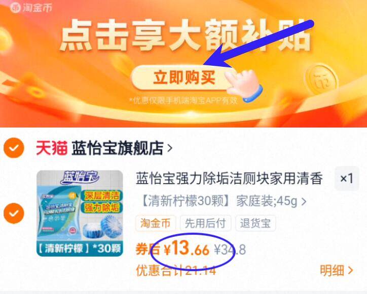 0.4亓/枚神圿下拉拍13.6亓 蓝怡宝 洁厕宝45g*30枚 去污除异味!家庭必备