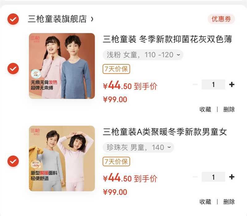 三枪儿童A类保暖套装