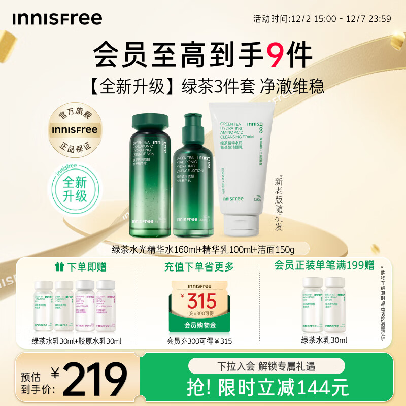219元 绿茶精华水乳洁面160ml 100ml 150g套装