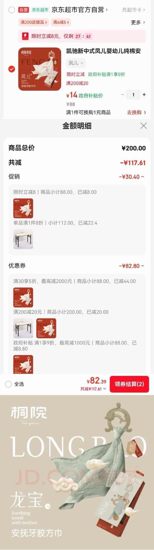 凯驰新中式龙宝婴幼儿纯棉安抚方巾牙胶