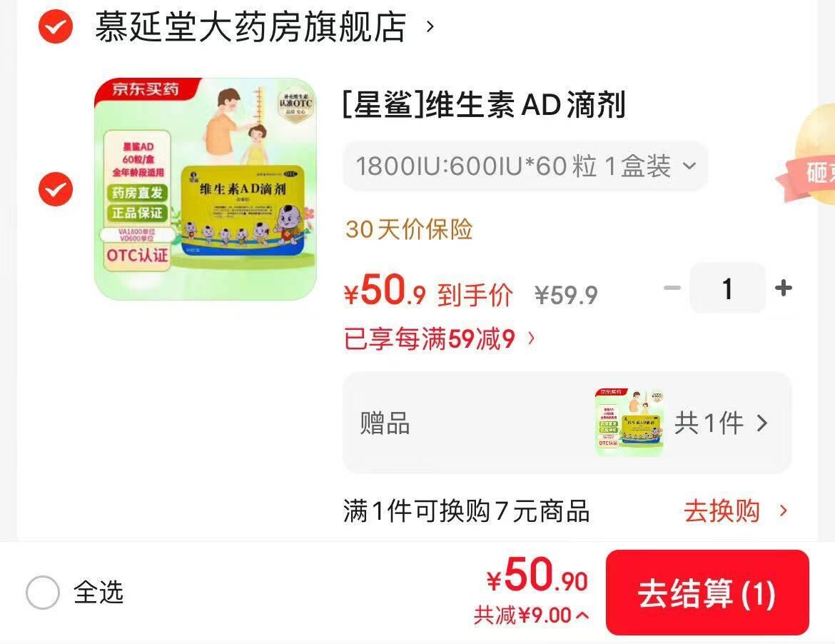 星鲨AD好价 0.42元粒!拍1赠1共2盒50.9元! 星鲨 维生素AD滴剂60粒 好单发报员 2025年12月05日 00:04 0 举报 星鲨AD好价0.42元粒!拍1赠1共2盒50.9元!星鲨 维生素AD滴剂60粒https://u.jd.com/ZaChy5P 到手共120粒 OTC版本药房发货 复制文案