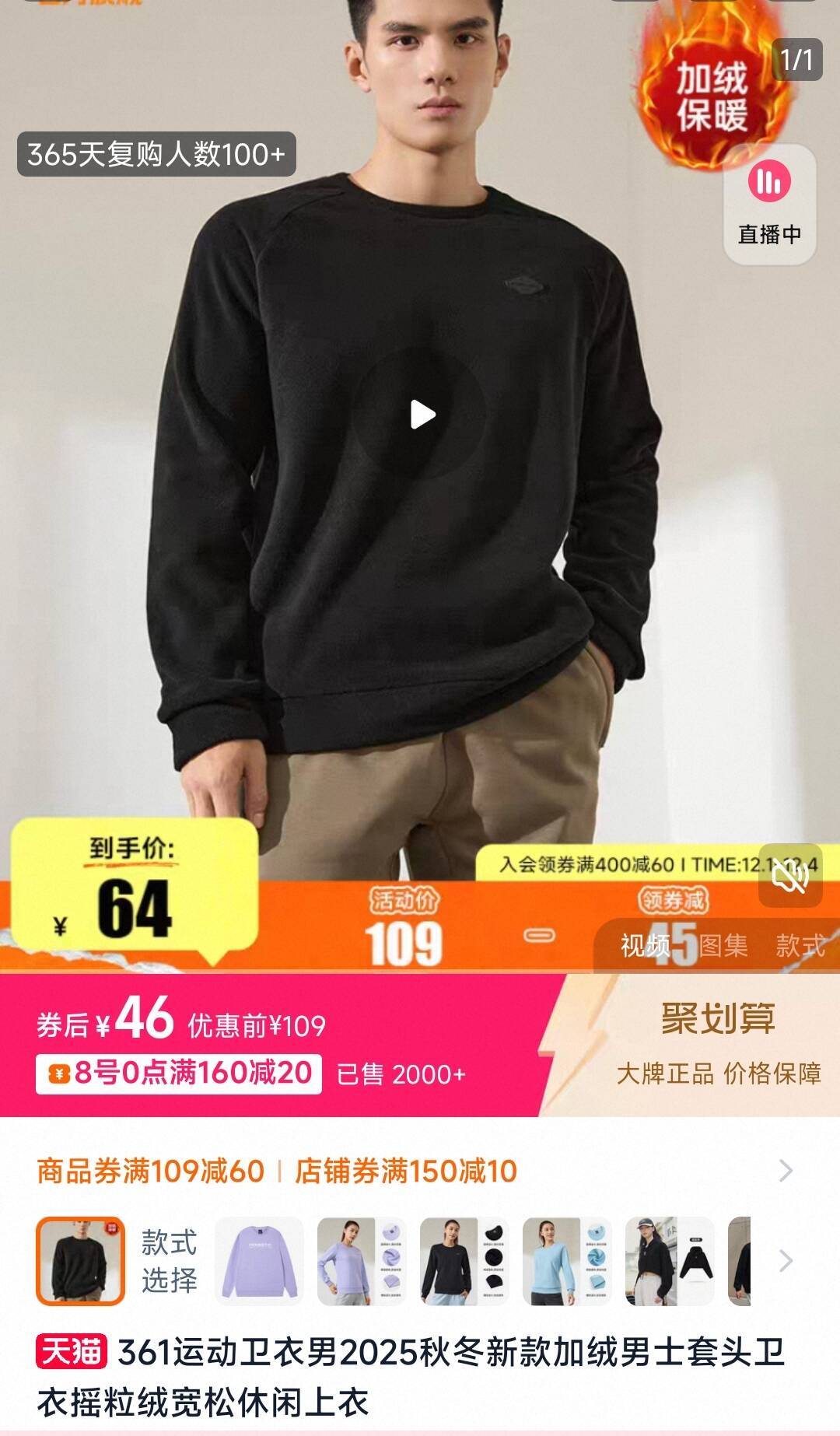 bug46亓一件的卫衣先锁! --- 361度秋冬圆领套头加绒卫衣 好单发报员 2025年12月05日 00:09 0 举报 bug46亓一件的卫衣先锁!---361度秋冬圆领套头加绒卫衣https://m.tb.cn/h.7ZGfTvN60款可任选!大促才有的忦! 复制文案