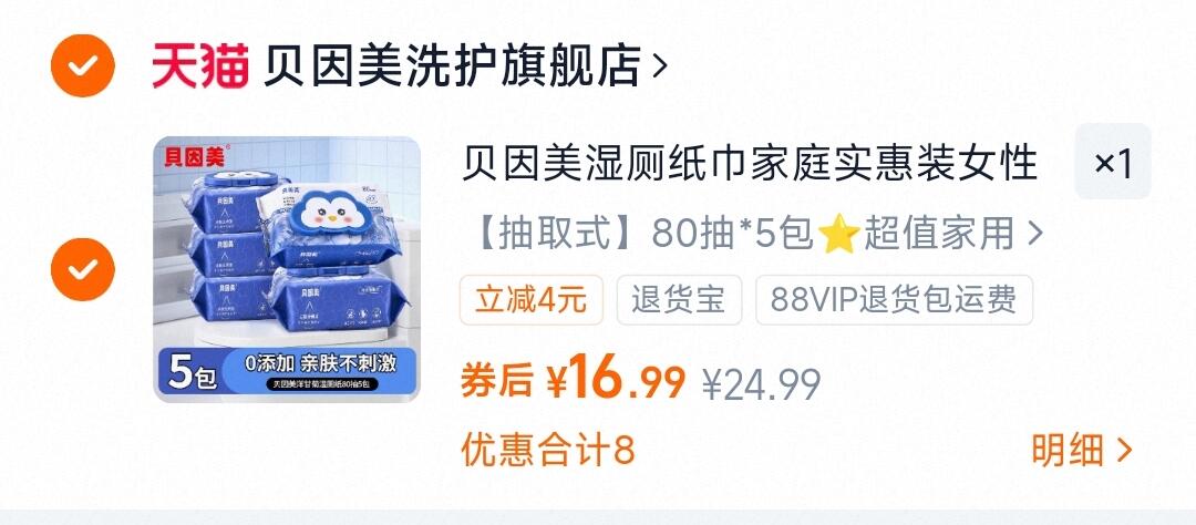 16.9亓 3.3/包 贝因美湿厕纸80抽*5包 好单发报员 2025年12月05日 08:39 0 举报 16.9亓(3.3/包)贝因美湿厕纸80抽*5包https://m.tb.cn/h.7Z2TYjX 复制文案