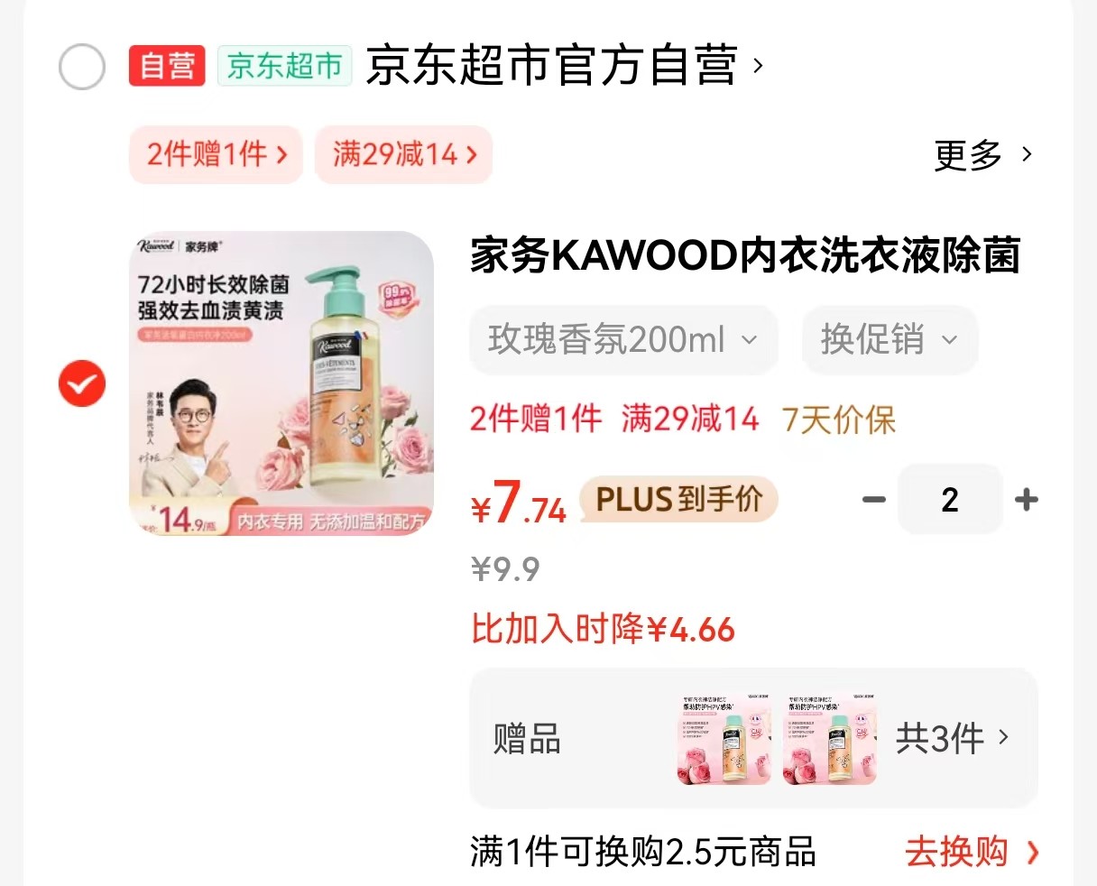 家务KAWOOD内衣洗衣液 200ml玫瑰,拍2件【15.8】