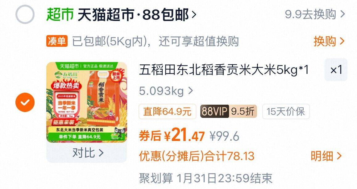 vip 21.4,折2.1亓/斤 五稻田 稻香贡米东北大米5kg 好单发报员 2025年12月05日 13:36 0 举报 vip 21.4,折2.1亓/斤【五稻田】稻香贡米东北大米5kghttps://m.tb.cn/h.7ZTxPU1 复制文案