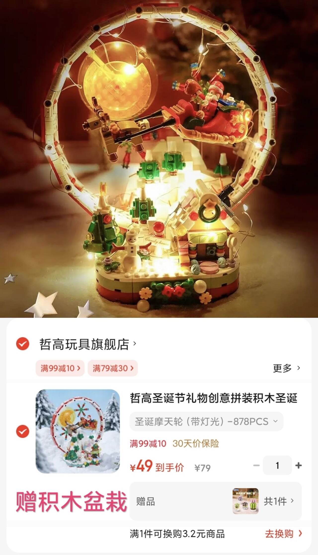 49元 圣诞节专属 哲高 创意拼装积木 圣诞摩天轮 带灯光 手拿礼物袋 适合6岁以上~ 好单发报员 2025年12月05日 14:48 0 举报 49元 圣诞节专属哲高 创意拼装积木 圣诞摩天轮(带灯光)https://u.jd.com/ZgKHcsp 手拿礼物袋 适合6岁以上~ 复制文案