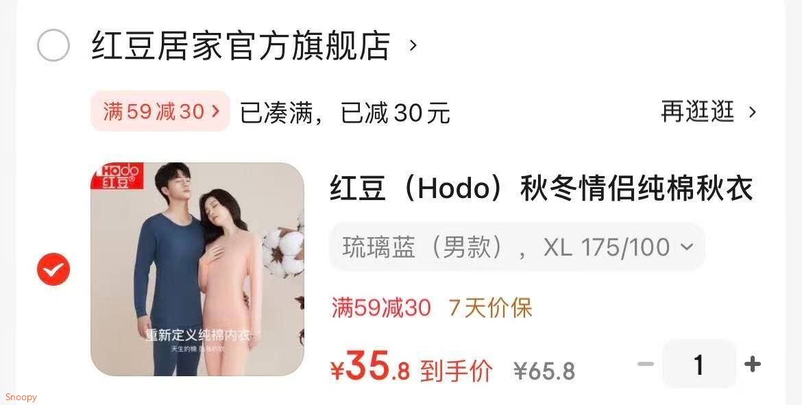 红豆 (Hodo)秋冬情侣纯棉秋衣秋裤保暖内衣套装,任选1款【35.8】