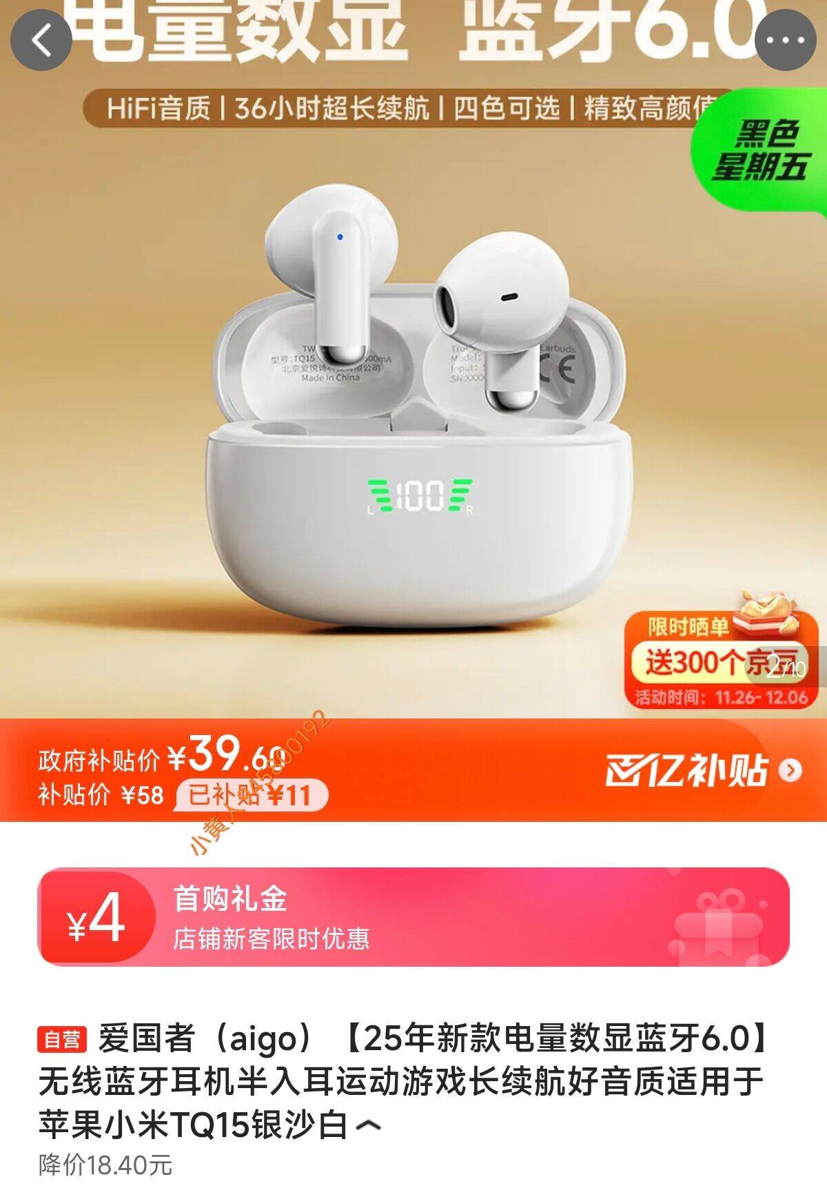 爱国者 TQ15 HiFi音质 半入耳蓝牙耳机,晒返3到手36.6