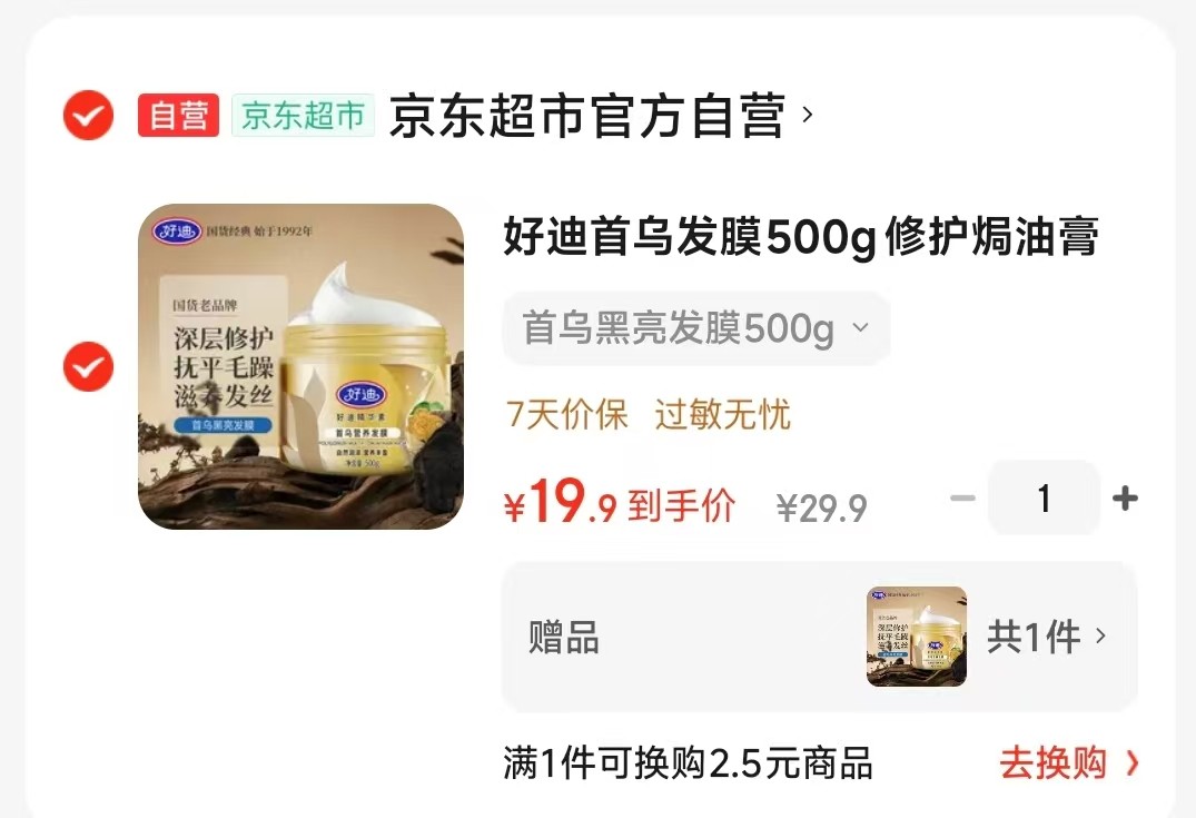 好迪 首乌发膜500g【19.9】 赠品 买一送一