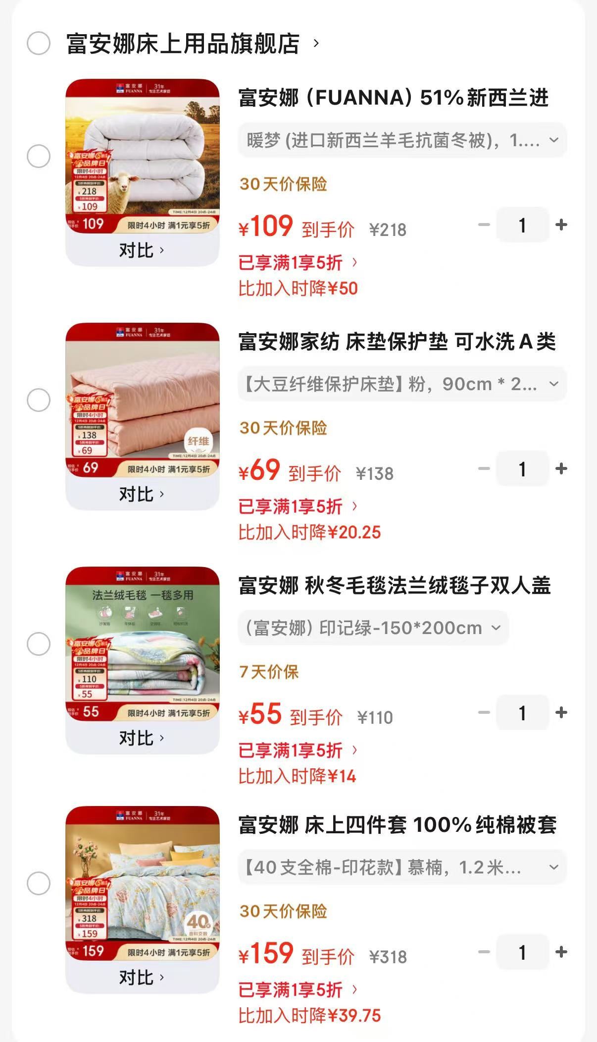 富安娜 51%新西兰进口羊毛被 券后109/149/169