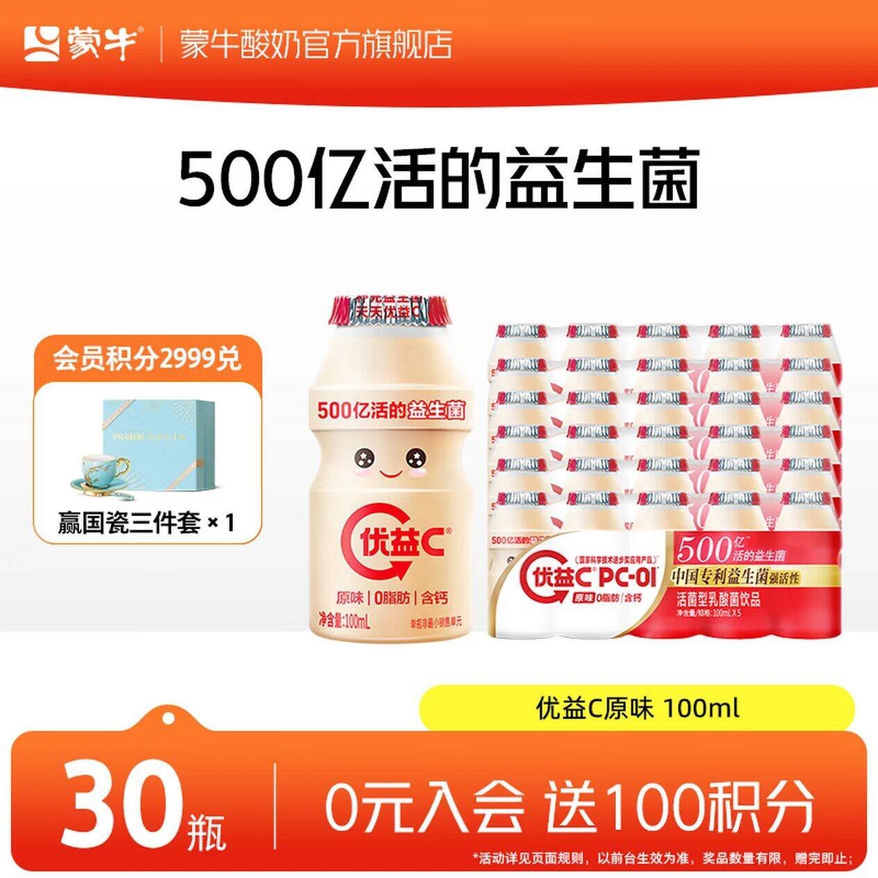 小优益C炒底忦 蒙牛 优益C乳酸菌100ml*30瓶 仅.需29.9亓,不到一亓一瓶
