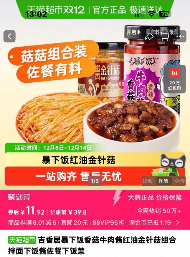 88vip11.92亓!低至6/瓶 --- 天猫超市 吉香居 好单发报员 2025年12月06日 13:26 0 举报 88vip11.92亓!低至6/瓶---【天猫超市】吉香居牛肉酱200g 红油金针菇180ghttps://m.tb.cn/h.7ZJNfTB右上角叠加淘金币价格成立拌饭拌面都贼香,真有牛肉粒 复制文案